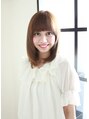 透明感のあるブルーアッシュベージュとサラサラストレートの愛されスタイルです(*^_^*)目の上のパッツンバングとも相性が良くおすすめです☆オールシーズン可能で、シーンを選ばない万能ヘアー(^^♪