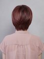 2ブロックを組み合わせて、スタイリッシュに決めたショートヘア。サイドのボリュームをカットすることでスタイリングが簡単に。小顔に見えるように、顔周りにローライトを入れ、全体のカラーはピンク系で女性らしい雰囲気に仕上げました。