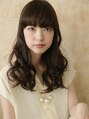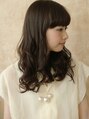 重たい前髪と長いロングのコラボで、ほんのりクラシカルなスタイル。毛先には少しレイヤーを入れて黒髪でツヤ感を演出。パッツン前髪はコメカミに向かってラウンドすることで小 顔効果が生まれます。さらにおでこが少し透けることで透け感◎ミックス巻きに!
