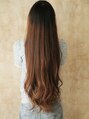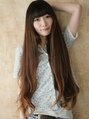 前髪はワンレングスで重重にカット。毛先はグラデーションを少し入れてレイヤーを入れて動きやすくカット。 ロングで重め前髪を作る人が急増中!!カラーは長さを生かしたグラデーションカラーに。内巻きに仕上げました。