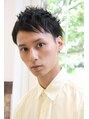 サイドは短めに刈り上げています。トップとバックは、立ち上がるくらいに設定しています。