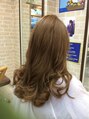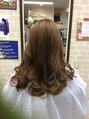 肩下からのダウンレイヤーで動きをつけて、毛先は敢えて重めにするのが今風です。カラーはベースを16トーン迄リフトし スモーキーアッシュベージュピンクパープルをほんのりのせました!