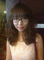 厚めバングが個性的くせ毛を活かしたエアリーカールふわセミディ