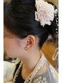 えりあしをスッキリまとめて花飾りで可愛く仕上げました。