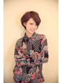 斜めバング、厚めバングで少し長めに設定し、小顔にみせつつ大人可愛い雰囲気のスタイル。耳かけ、無造作アレンジも良いです。黒髪でも可愛いです。