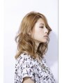 鎖骨ぐらいのレングスで軽くなりすぎないようにレイヤーをいれ、プラチナベージュでカラーリング。パーマの場合はデジタルパーマでミックス巻き。