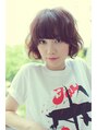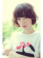 カジュアルに崩したパーマに厚めバングのラインのとり方でちょっぴりモードをエッセンス♪フェミニン過ぎずモード過ぎないバランスが今、かわいいです!甘辛MIX