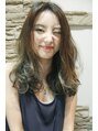 - 部分的にブリーチをしてブルーをのせてお目立ちカラーの完成です