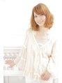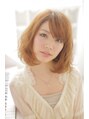 丸み・揺れ感・透明感のある愛されミディアムヘア。カットはパーマの動きがより際立つように表面に少しだけレイヤーをいれています。全体に動きがあるので前髪は少し重ために。カラーは明るさを意識したオレンジベージュです。