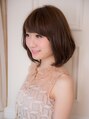 フェミニンな耳かけ重めボブスタイル。伸ばしかけでもガーリーマッシュ、くせ毛風カールやルーズな大人ボブパーマをかけると自然なエアリーカールで簡単スタイリング。黒髪でも◎