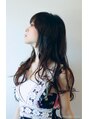 高い位置から大きなウェーブを作る事で、落ち着いたカラーのロングヘアーに軽さを作りました。前髪とお顔周りの髪も毛先を軽くする事で重さと軽さのバランスが良くなります。