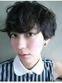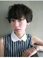 ダークアッシュカラーのクセ感カールショート。前髪を厚めに取ってボリュームを出したのがポイントです!自毛に近い暗髪は色持ちも良く透明感が出て大人可愛い雰囲気に。ファッションに合わせやすいスタイルでメンズライクな気分の人にも◎柔らかショート