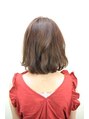 肩にかかる長さの平行ボブ。伸ばしかけのはねやすい時期も、パーマをかけることでスタイリングしやすくなります。カラーは7レベルのブルーミントアッシュ。