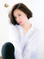 フェミニンボブです♪重めマッシュバングで目力UP!かきあげてもOK!ほつれウェーブやカールでふわミディひし形フォルムに!小顔似合わせカットが得意なのでご相談下さい♪黒髪,ルミエール,ヌーディベージュカラーとも相性◎伸ばしかけの方もぜひ♪