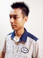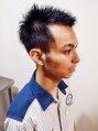 サイドとバックをかりあげてトップを少し長めに残したショートスタイル。