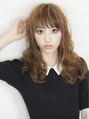 ゆるウェーブロングスタイル♪全体をやや前上がりベースに、顔周りは少しレイヤーを入れ軽くカットしております。バングは隙間を作るようにスライドでカットしております。デジタルパーマで朝は楽にスタイリングできます♪