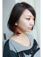 ダークカラーにハイライトでピンクを♪耳後ろの隙間からハイライトが見えますよ~♪