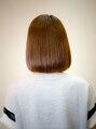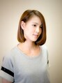 肩ぎりぎりの長さでもはねないように首元の髪をカット。ブローなしでも毛先が入るように計算しています。前髪部分を斜めにサイドへ流すことにより、より大人っぽいクールな印象に仕上げています。