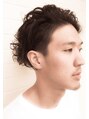 ショートからメンズミディアムになりかけで、パーマをオン。動きがでて少しワイルドな印象に。