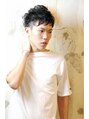 さっぱりと刈り上げたサイドにトップの強めのカールがかっこいい!!ネオモヒカンスタイルです★ウェッティにスタイリングして大人ワイルド仕上げが今っぽい!パーマをかけることでいつもと一味違う髪型になれますよ!髪質も合わせ、ぜひご相談下さい!