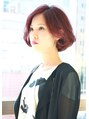 深めに入れたレッドバイオレットがポイント。乾燥しやすい秋冬にぴったりなツヤ髪になります。やりすぎないくせ毛風パーマでふんわり楽チンボブスタイルに!