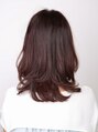 落ち着いた重めベースのセミロングにレイヤーをいれて表面に揺れ感を出しました。カラーは艶感のあるピンク系でフェミニンに。