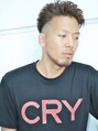 サイドからネープにかけてバリカンで刈り上げ。ネープはナチュラルな刈り上げ風につなげて、前髪が1番長くなるようにカット。カラーは11レベルのオリーブを刈り上げ以外に。焼けた素肌との相性バッチリです。俺達の夏はこれから!