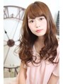 斜め前髪が可愛い甘辛MIXのウエーブスタイル♪シルエットをAラインでカットして中間~毛先にデジタルパーマをかけてほつれウェーブ感を。カラーを明るめのヌーディカラーで柔らかい感じに♪どんな方でもピッタリ♪優しい印象にもなるのでオススメです☆