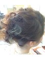 肩に少しかかるかどうかぐらいの長さでしたがカールを作って少し編みこみも入れて柔らかアップにしました