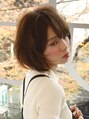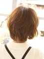 カット*ショートボブベースでカットしています。 前髪を厚めにカットし、自然に流しているのがポイント! *カラー*10レベルのアッシュベージュ *パーマ* 根元からふんわりと弾むようなパーマをかけます