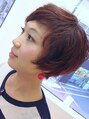 ショートスタイルでも軽くし過ぎず重めで丸みのある柔らかいカットラインで自然な動きを演出。彼女の癖毛を活かしてスキバサミやレザーは入れずに束感重視のカットで造り込んでいます。カラーは暖かみのあるローズカッパーで艶を重視!