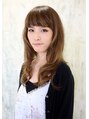先日のお客様☆前髪パッツンにして毛先に動きをだし、毛先をヘアアイロンで巻いています。カラーはハイライト&ローライトで仕上げています。ベースはベージュブラウン☆前髪にカラーでインパクトをだしました♪