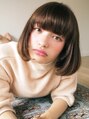 シンプルな外国人風ボブです。アンティーク調なルミエールアッシュカラーで、魅せてます。目の上で厚めにとった前髪 × 前下がりラインの重めボブが印象的な、フレンチボブです。
