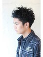 サイドはソフトなツーブロックに!全体的に無造作に程よく束感を!えりあしもソフトに刈上げにしすっきりと。前髪は眉毛にかかるくらいで上げバングに!好感度の高いさわやかなニュアンスパーマスタイルです!ビジネスの方や、校則の厳しい方にもお勧めです!