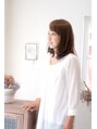 鎖骨くらいのミディアムレングスでワンカールをプラス。梅雨のこの時期でもまとまりやすくはねても形になる大人カール。