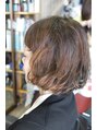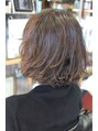 癖毛を生かして、角の残るボブに変身です。顔の形に合わせた似合うボブを提案します。前髪はこの秋流行のオン眉。