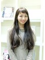 胸下ロングにゆるーく毛先にカールをつけ、眉上でアシンメトリーに切った前髪がとってもおしゃれでキュートで可愛い大人ロングスタイル!!