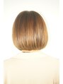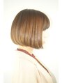 やや前下がりのどんなシーンにも適しているオールマイティボブです!形としては首元をスッキリと切り、ストールや襟の高い洋服にも合わせやすいように切っています。カラーでピンク味を効かせたブラウンと前髪にローライトを入れて遊び心を出しています。