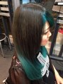 ブリーチ後深めのアッシュ系とグリーンで、全体を寒色系にカラーリングしました♪