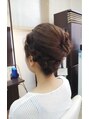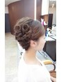 結婚式のセットです。毛量が多いので、ボリュームを出すよりコンパクトにして欲しいとのオーダー。サイドより大きめに編み込んで、右サイドで逆毛などはたてづにたくさんのループでまとめました。