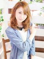 明るめの髪色に緩やかウェーブをプラスして柔らかさを出したミディアムスタイル。フルバングで甘めなスタイルでも有りです!