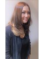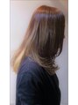 カラーは上はアッシュブラウン、下は明るいベージュで変化を持たせ、スタイリングは、巻いて毛先に動きを出してフェミニンさを出しました。