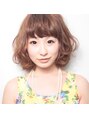 今流行りのショートバング。毛先のウェーブが輪郭を消したり、ボリュームを出します。カラーはハイライトとローライトを入れて軽く動きがあるスタイルに!