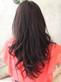 ベースは前上がりベースのローレイヤースタイルです。全体的のシルエットには重たさを残しつつも、顔周りにはレイヤーを入れる事によって・スッキリ感・動き・柔らかさをプラス☆カラーはダークブラウンをチョイスし柔らかいイメージに仕上げた巻き髪ロング☆
