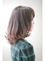 ミディアムランダムカールロブのスタイルノームコアカラーでもアッシュベージュで顔周りも似合わせカットに全体にニュアンスパーマとランダムカールでナチュラルな動きセミウェット、ダブルカラーなどアレンジ効く前髪もシースルーバングにもボブディにも可能