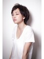 ダークトーンで作る、カジュアルショート。カラーはブラックパープル。ラフに動く質感のカットがポイント