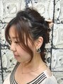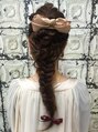 大き目の編み込みと、ふんわり柔らかい雰囲気がポイント!いつもよりオシャレにきめたい時や結婚式の二次会にもおススメです。リボンの飾りを付けて可愛らしく。