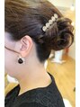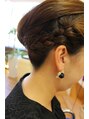 トップをふんわりルーズに仕上げて、サイドから編み込みしタイトにまとめたスタイルです。