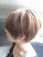 カットは前下がり風ショートカットです。カラーでナチュラルベージュにしました。