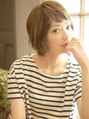 顔周りに効かせたローライトで野暮ったさを引き締め、流し前髪からサイドの似合わせカットで、さらに小顔を演出した甘辛MIXなショートボブに!ルーズで無造作なゆるいパーマもプラスすることで簡単スタイリング&ラフでオトナ可愛い印象( ´ ▽ ` )